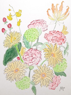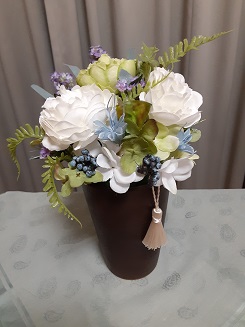 2024年7月20日、夫の勤務中の介助をパートタイマーでしてくださっていた方々から、お花をいただきました。生花と見紛うような手作りの造花です。